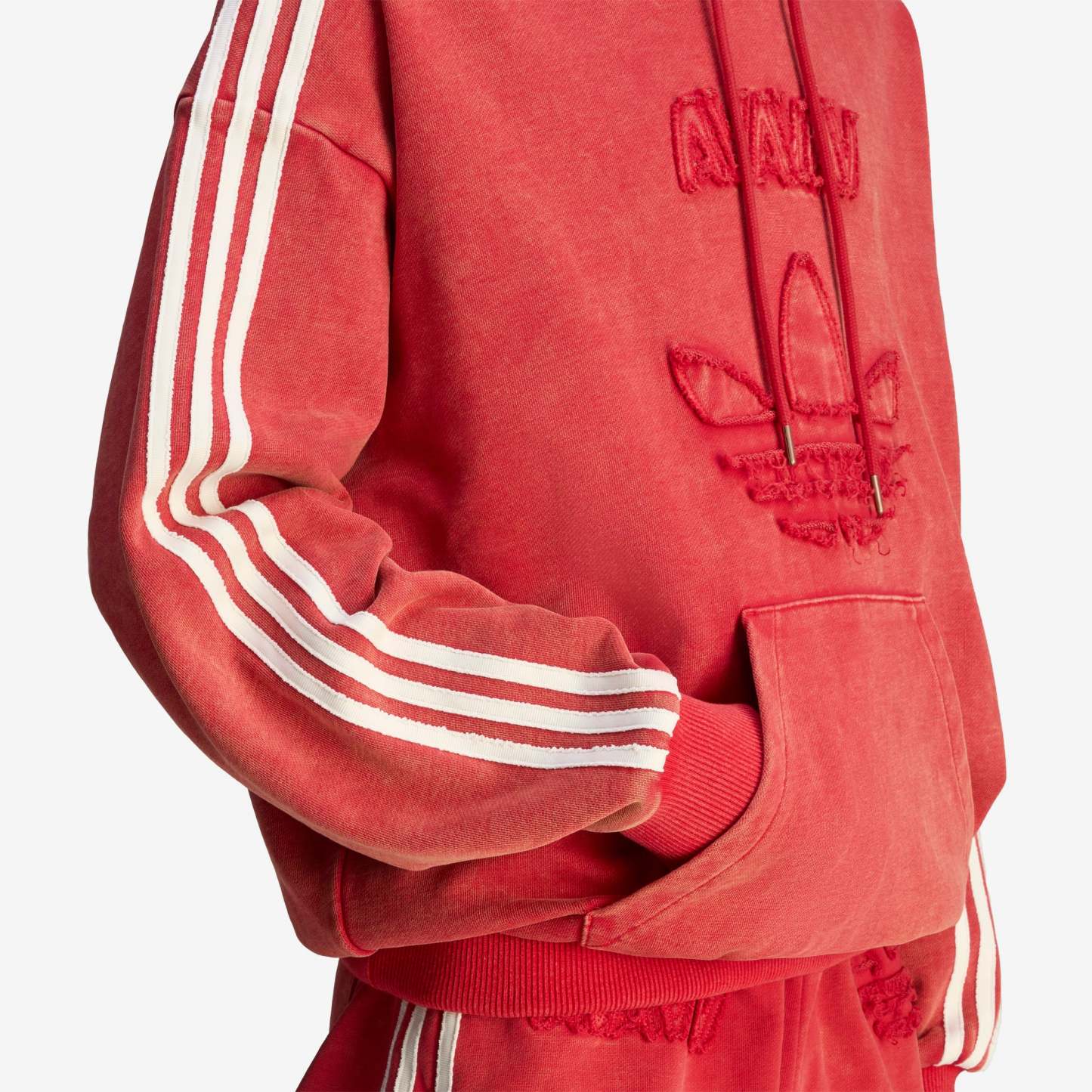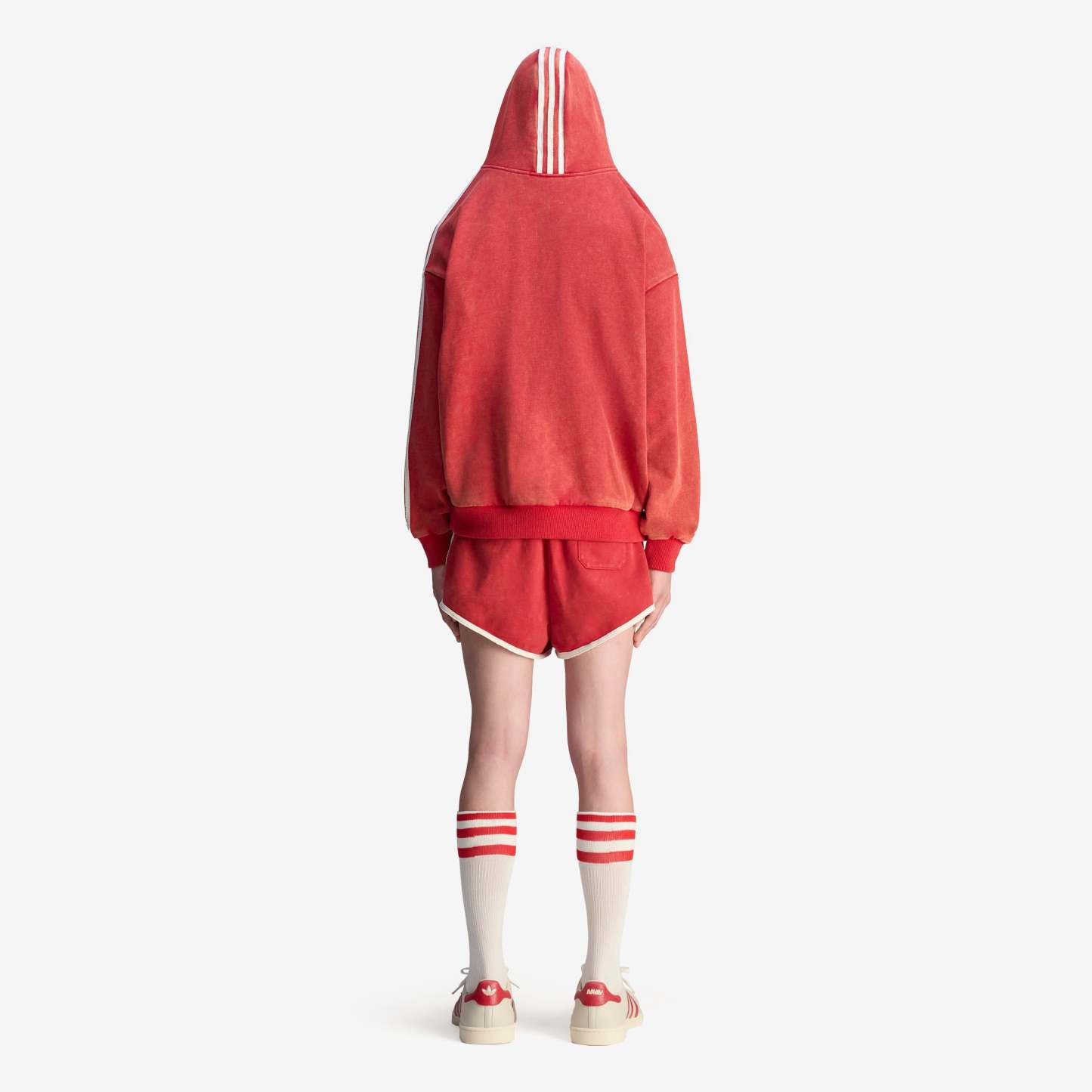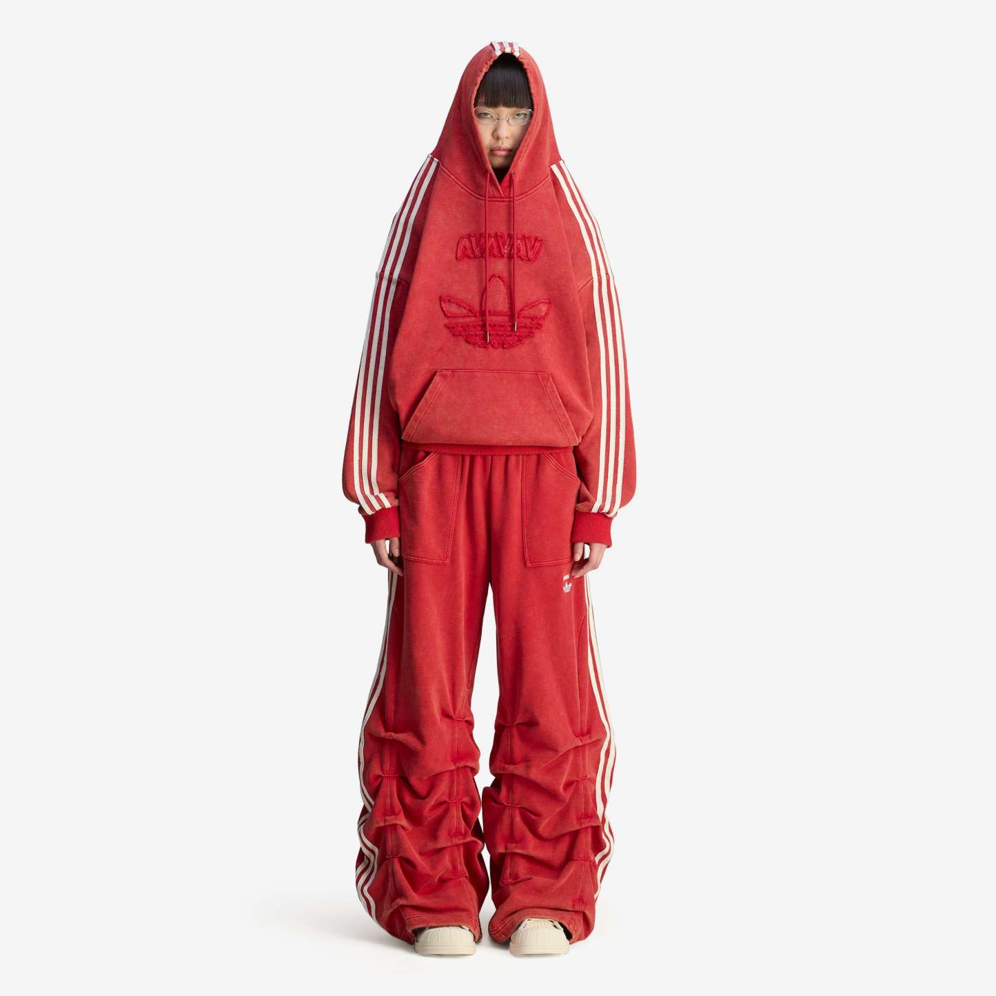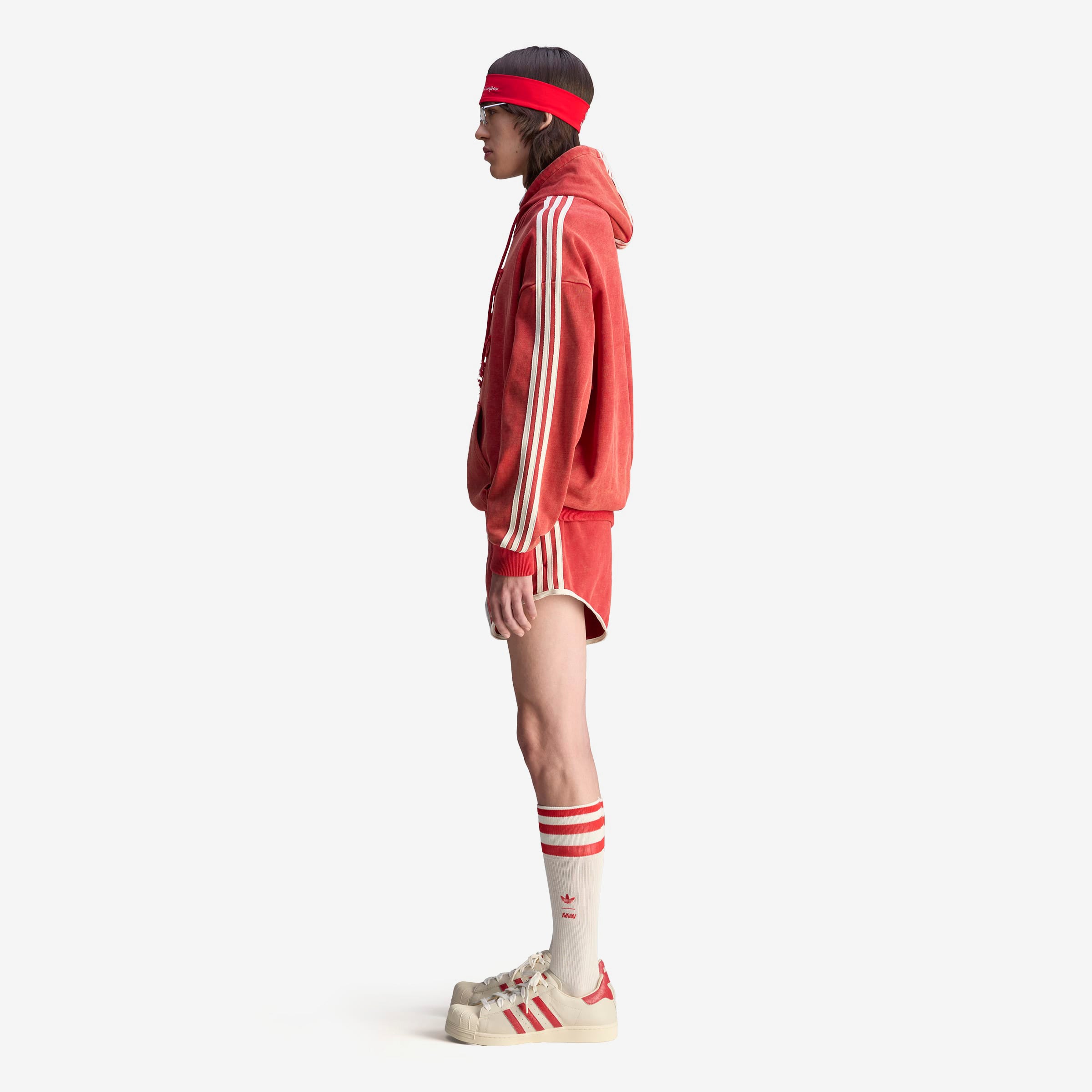 After teaming up for the first time in 2024, adidas Originals reunites with Swedish fashion label Avavav for Spring/Summer 2025 with a second subversive collaboration—redefining signature Avavav looks through a subverted sporting lens. Based on Avavav's iconic shoulderless silhouette, this adidas hoodie by Avavav borrows elements from the adidas archives to achieve a fresh look. It's crafted from distressed French terry material with a washed look, which gets emphasised further through the distressed branding execution, creating an air of casual luxury and vintage appeal.
