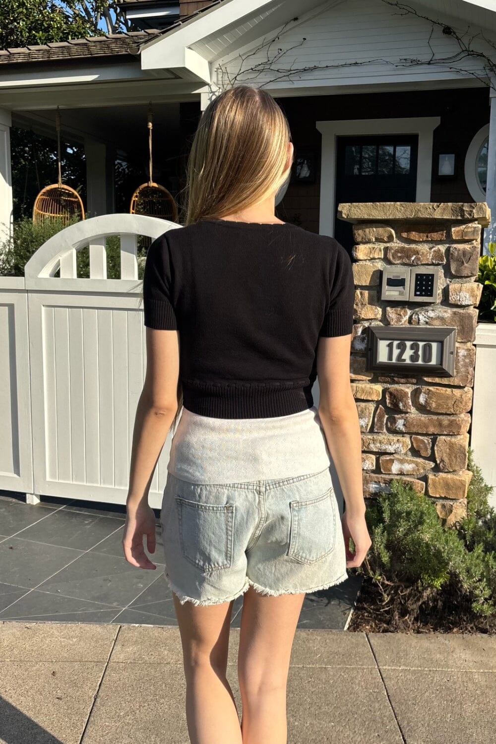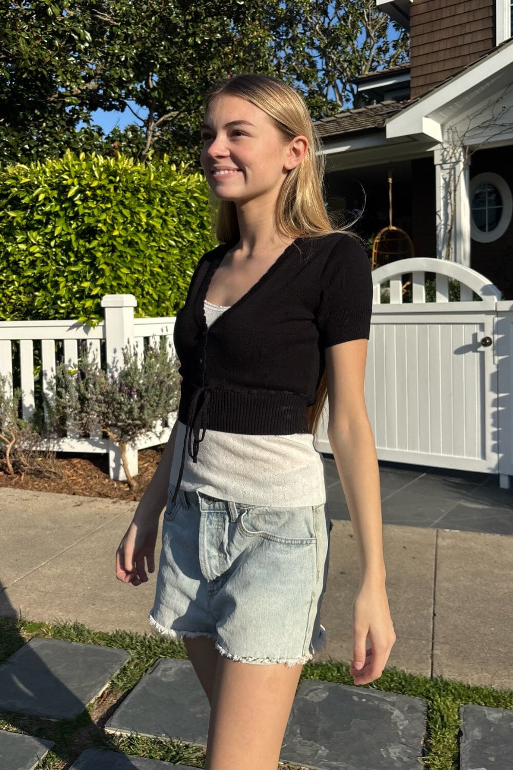 Cardigan short sleeves with v-neck, button up, adjustable bow.Fabrics: 100% cottonMeasurements: 15" (38 cm) length, 15.5" (39cm) bustMade in: China