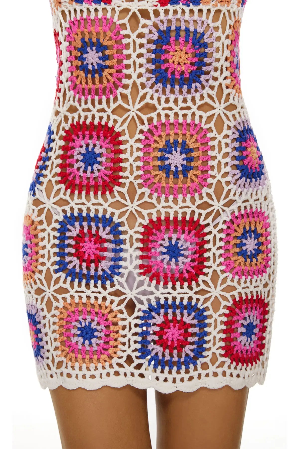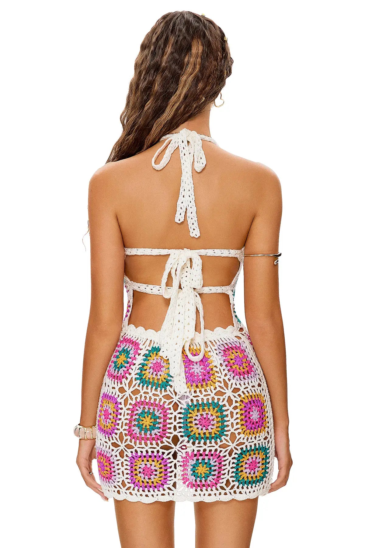 Hand-crocheted with vibrant Aztec motifs, this cover-up takes over a dozen hours to create by hand. This is more than a piece—it's a feeling of bold confidence and bohemian romance. Designed for sun-drenched days and enchanting evenings, it wraps you in stories and style.