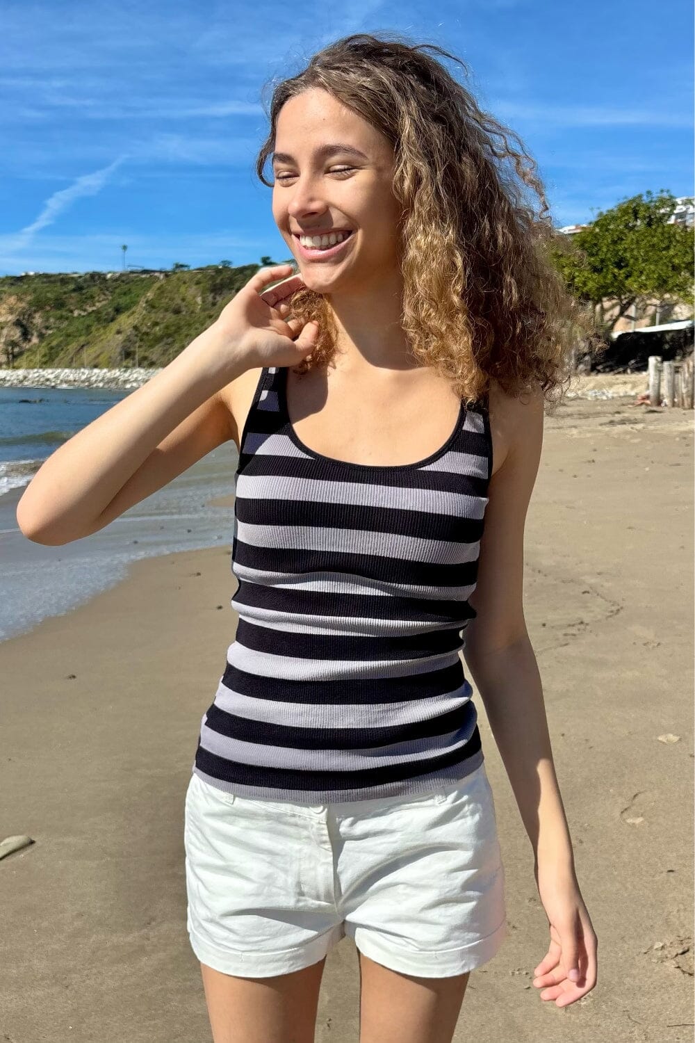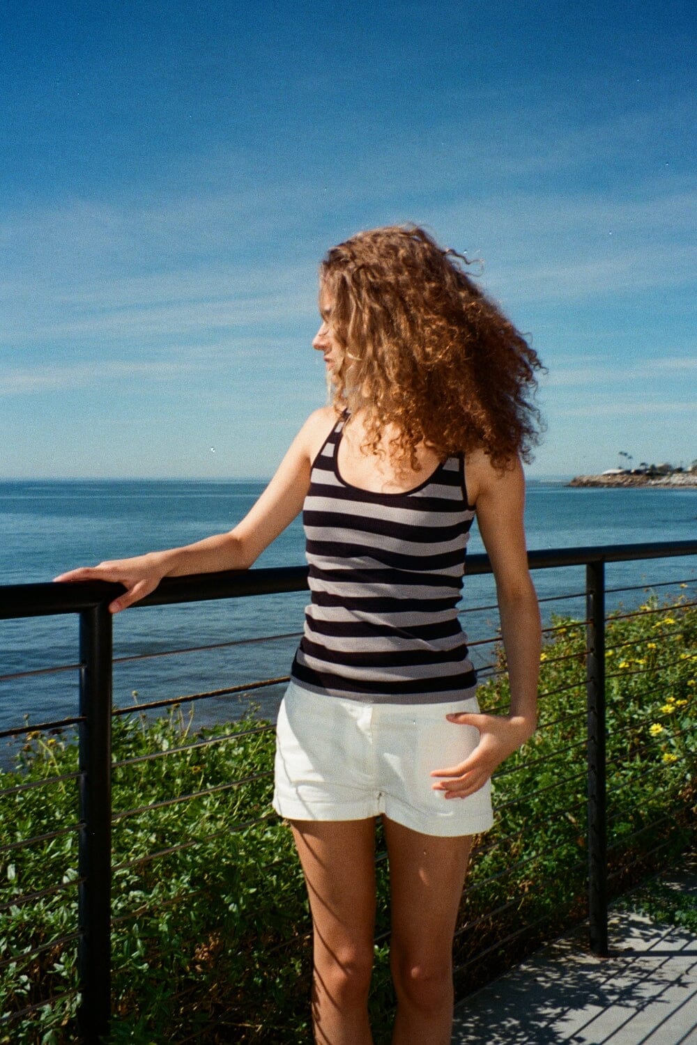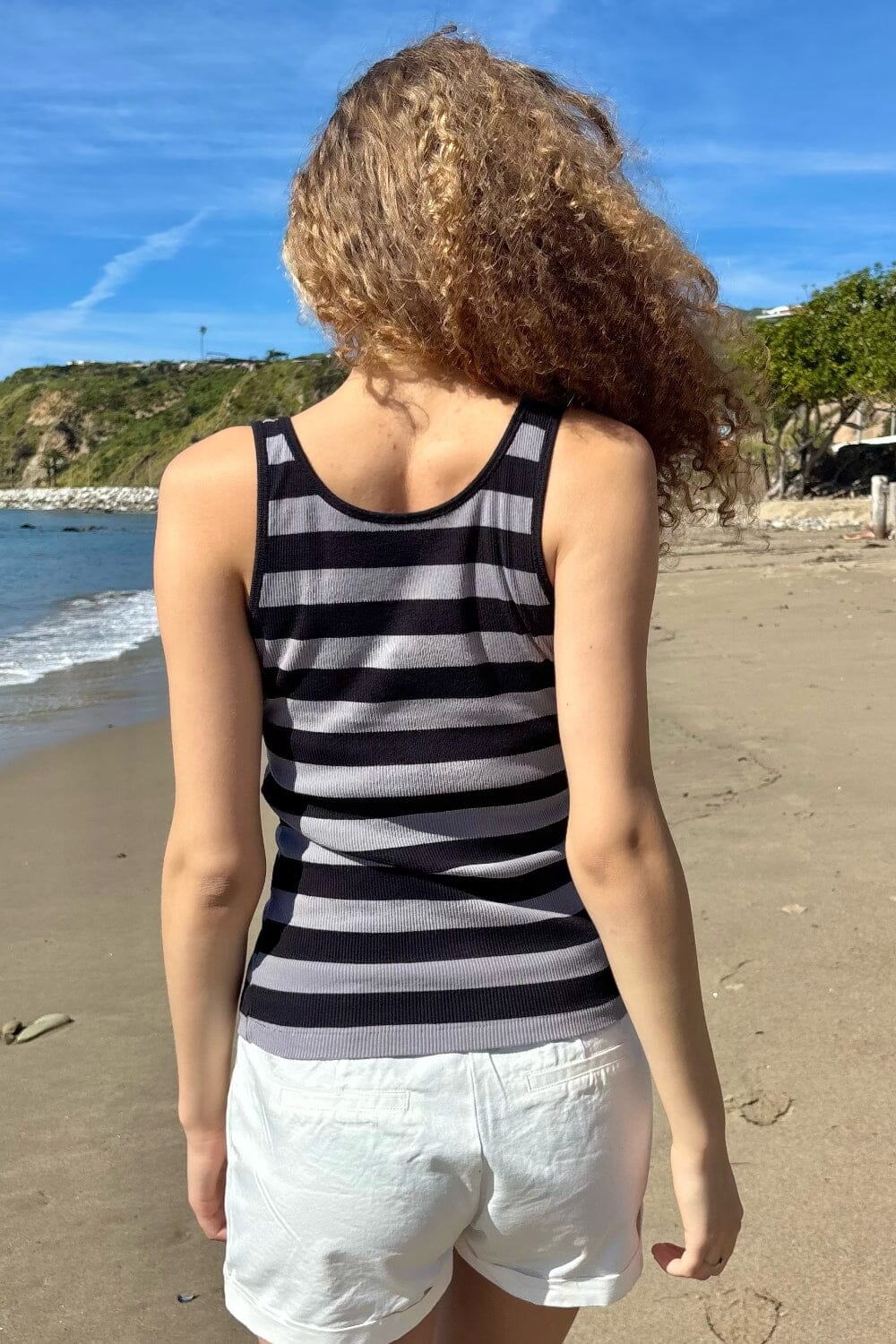 Ribbed cotton tank top with a scoop-neck, stripes. Fabrics: 100% cotton Measurements: 16.5" (42 cm) length, 11" (28 cm) bust Made in: Italy