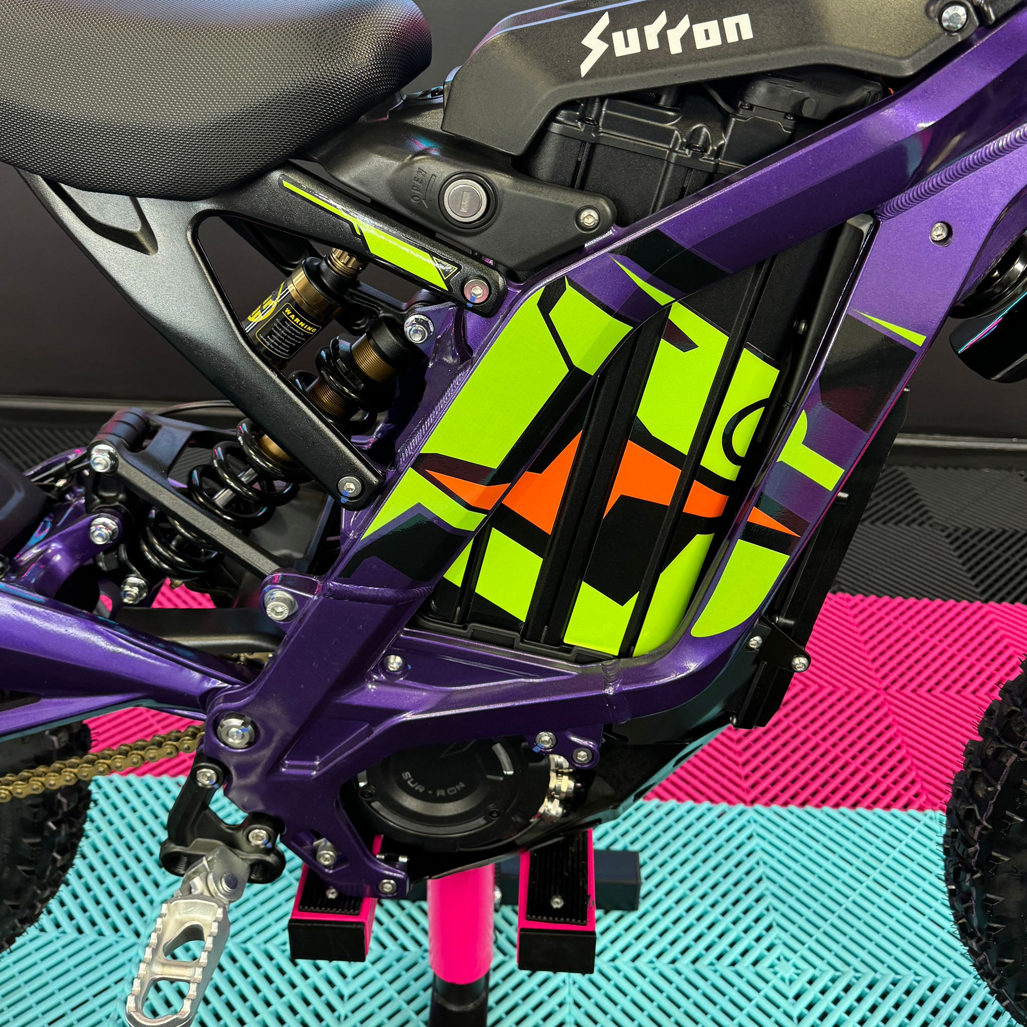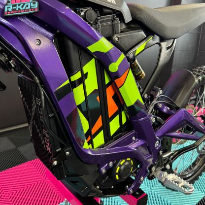 At R-Kay Performance, we're thrilled to offer the brand new Surron Light Bee X, a CE-approved UK-spec model. It's finished in Phantom Purple with eye-catching Green OEM stickers. With the latest 60v 40Ah Samsung Cell Battery, it delivers improved power and range, reaching speeds of up to 50mph. Plus, it comes with full 18 months warranty! It's an incredible package! 🎯