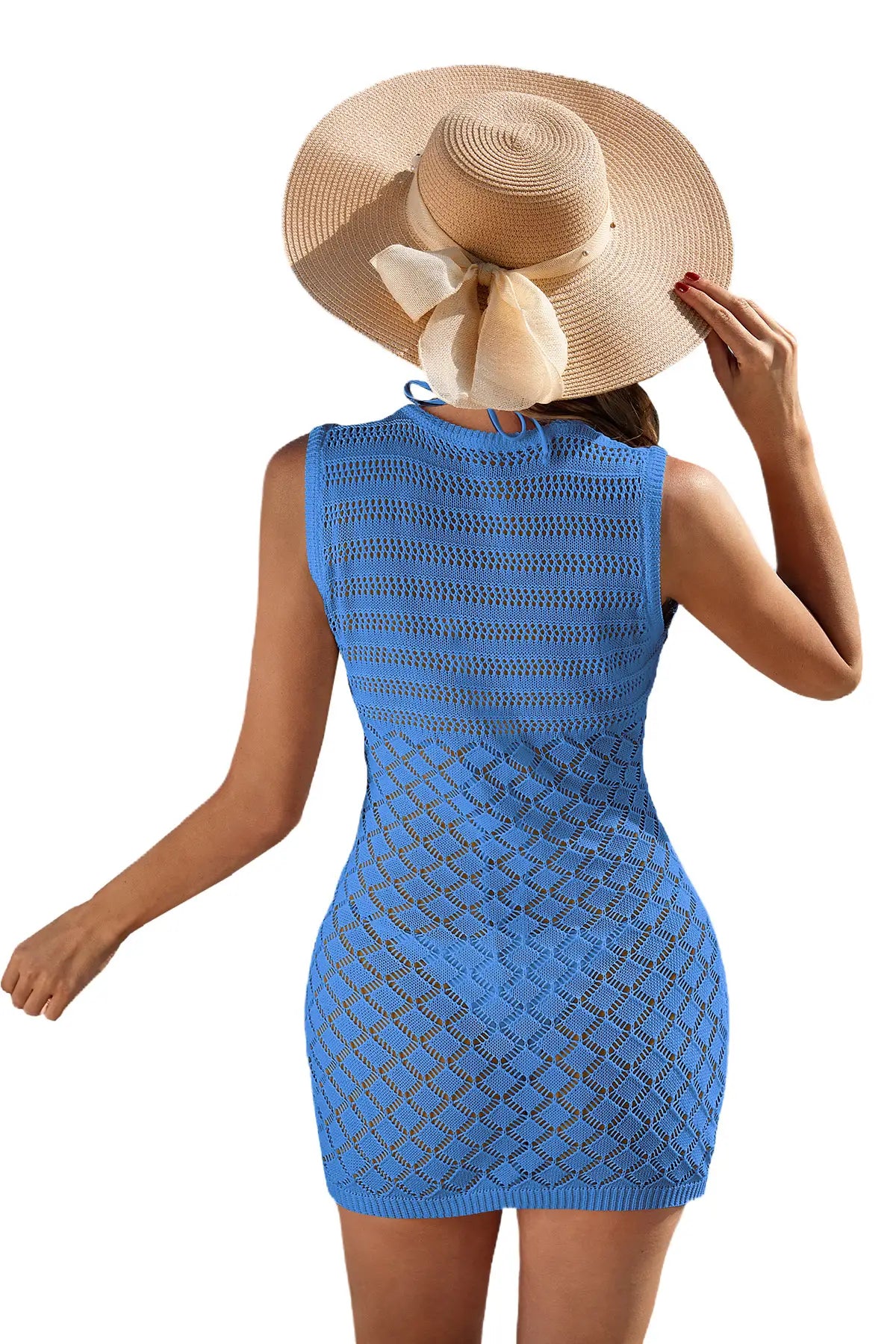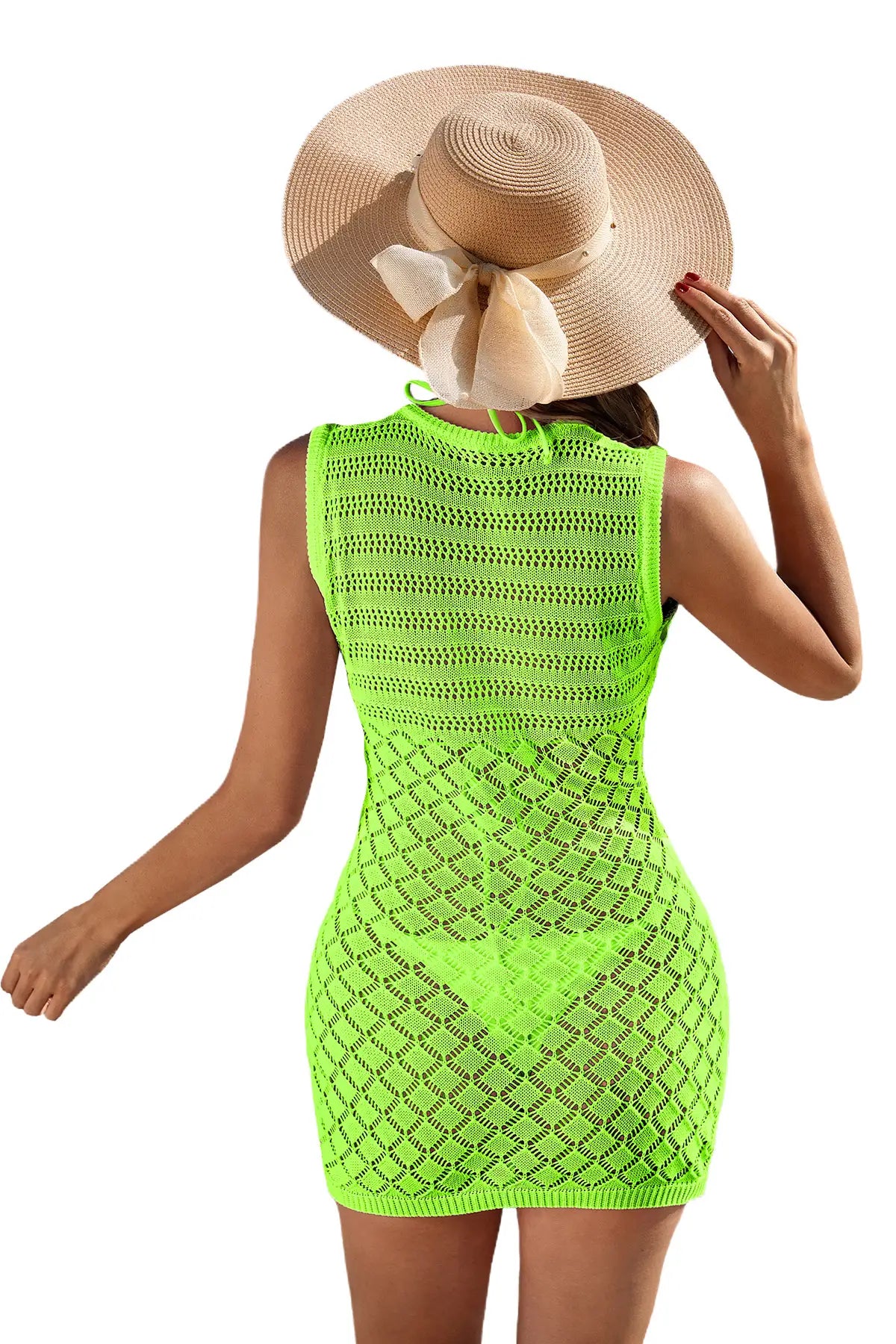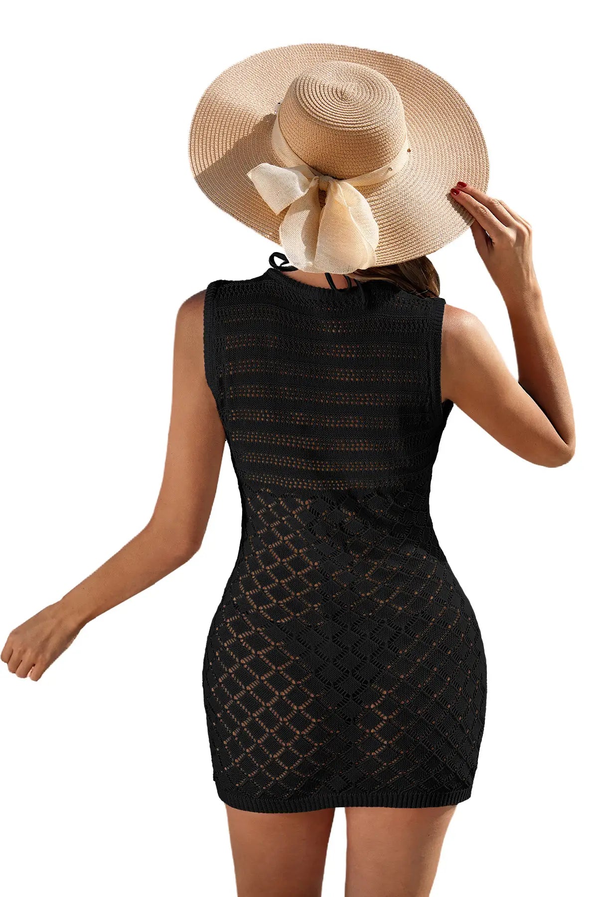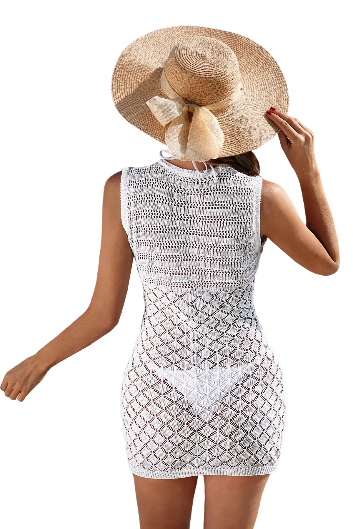 Drape yourself in effortless bohemian charm with this crochet swimsuit cover-up, featuring a V-neckline and adjustable front tie for a customizable fit. Delicately crafted with hollow-out knit details, this lightweight piece adds a touch of elegance to your beach look while draping beautifully over any swimsuit.